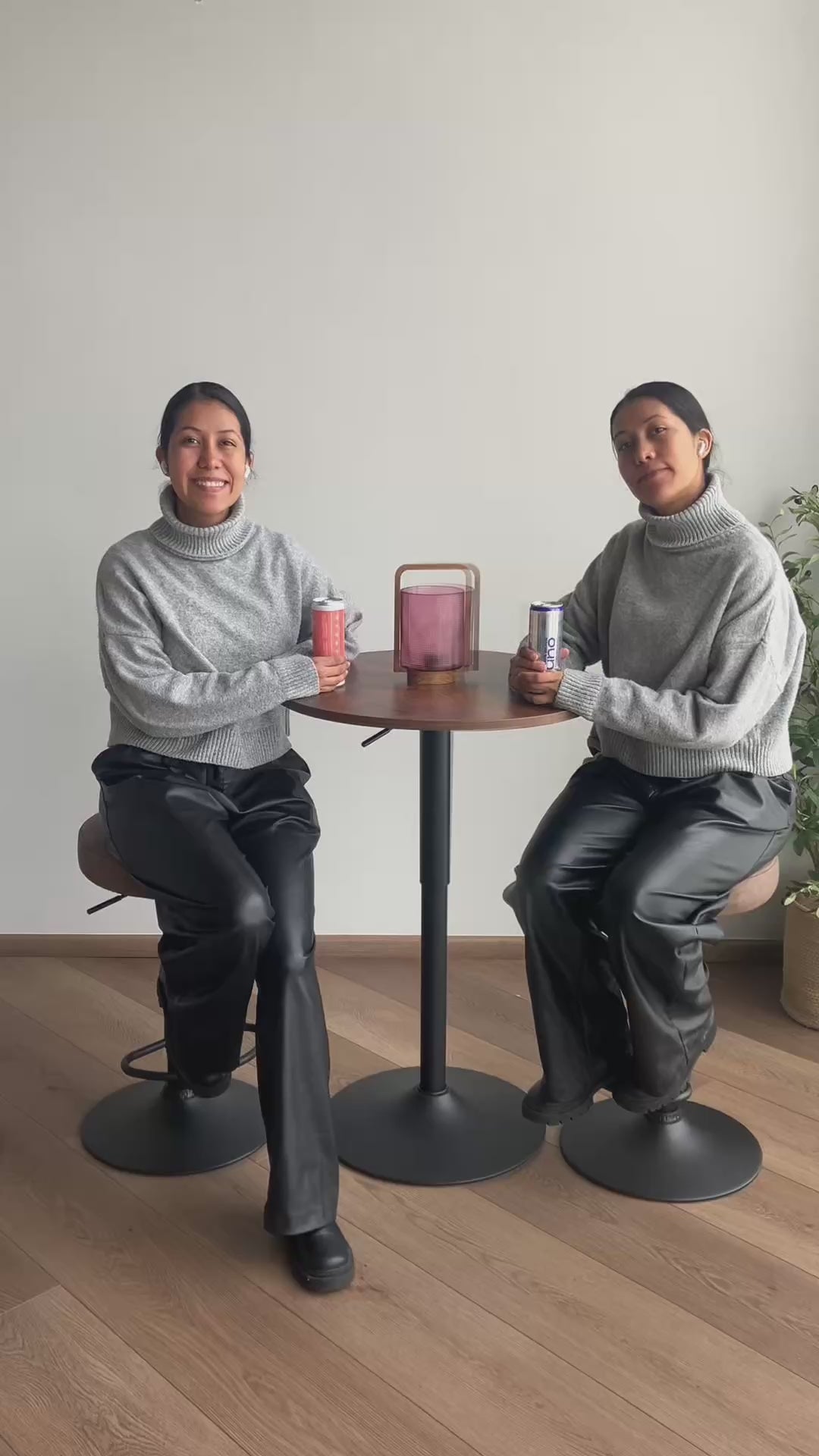 Esta mesa de bar cuenta con un tablero giratorio de 360°, ideal para acceder fácilmente a bebidas, aperitivos o café. Su acabado en marrón vintage aporta un toque elegante y retro, perfecto para bares, pubs, fiestas y reuniones sociales.